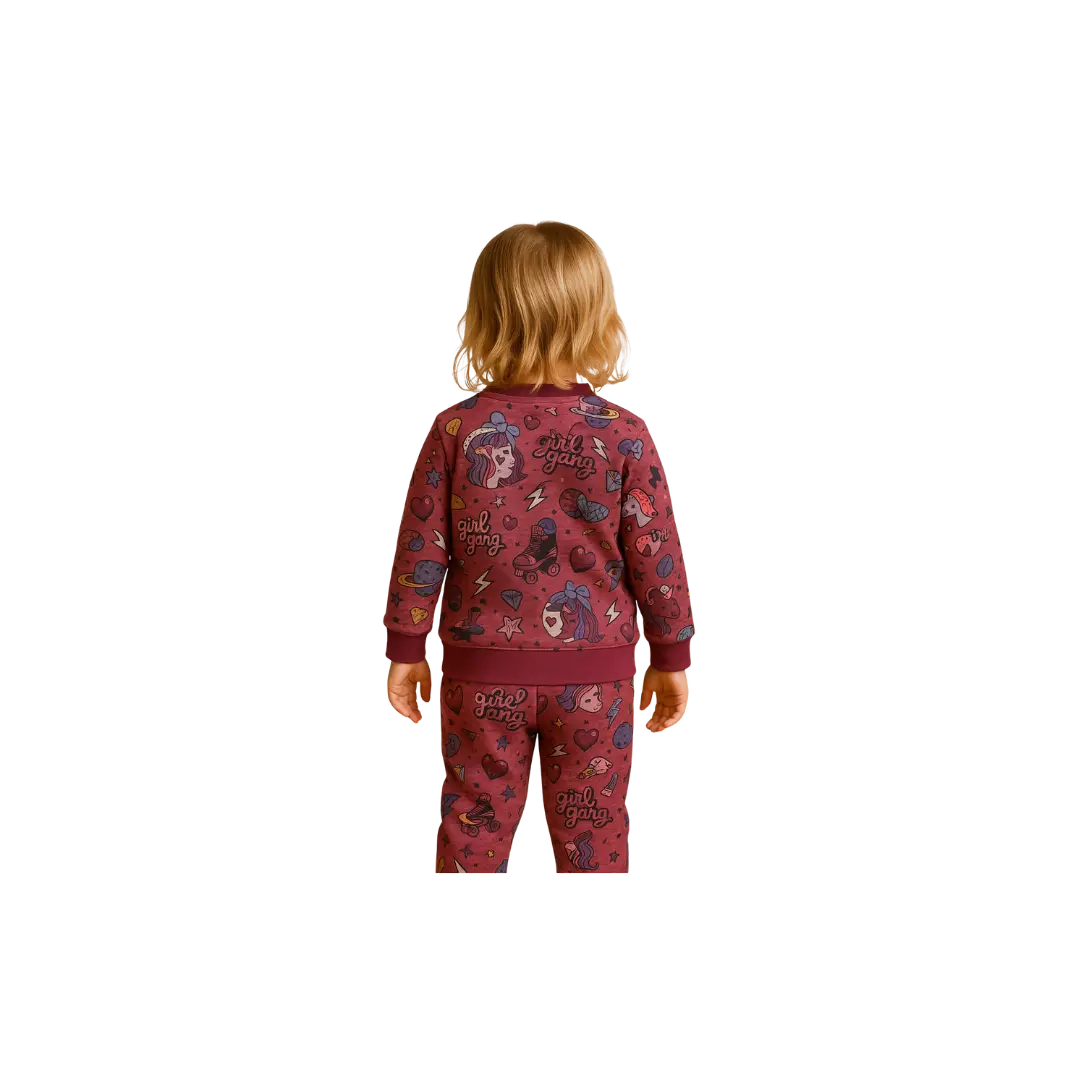 Dieses verspielte zweiteilige Set wurde entworfen, um die kühne Fantasie der Kindheit einzufangen. Mit lebendigen Illustrationen, sanften kastanienbraunen Tönen und einem fröhlichen Girl-Gang-Motiv ist es wie geschaffen für Tage voller Kreativität, Bewegung und Neugier. Jedes Detail - von den dehnbaren Bündchen bis zur glatten Innenseite - sorgt für Komfort, der den ganzen Tag anhält. Auf der Vorderseite sind das ausdrucksstarke Artwork und das gold-schimmernde MINTIMONKS-Logo zu sehen, das stolz mit der Qualität der Stickerei Wien bestickt ist und diesen geblümten Kinder-Trainingsanzug sowohl stilvoll als auch sorgfältig verarbeitet macht.